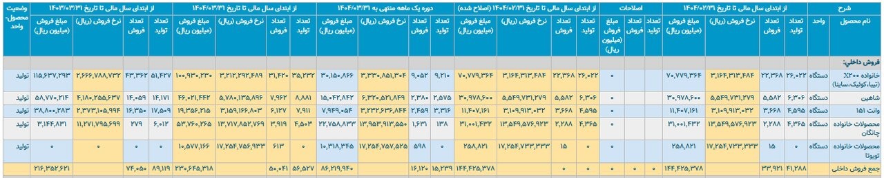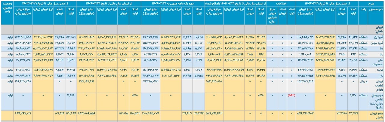 نشان‌دهنده افت ناچیز ۰.۱ درصدی است. به این ترتیب می‌توان گفت تیراژ کلی این خودروساز در مقایسه با سال قبل تقریباً بدون تغییر باقی مانده است.