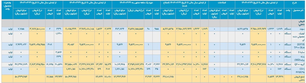 براساس اطلاعات سامانه کدال، در سه‌ماهه نخست امسال، ۵۷۸ دستگاه از خودروهای تولیدشده به‌صورت ناقص بوده‌اند که تحت عنوان «خودروهای تولیدی تجاری‌نشده سایت‌ها» ثبت شده‌اند. همچنین در بخش «سایر محصولات»، ایران‌خودرو موفق به تولید چهار هزار و ۴۶۷ دستگاه خودرو شده است..