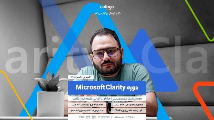 دومین دوره نیما محمدحسنی و کالج تپسل دوره آموزشی clarity است که قرار است از ۳ تا ۱۷ مهرماه برگزار شود. در این دوره آموزشی کالج تپسل، قرار است در مورد یکی از ابزارهای مهم رفتارشناسی کاربران به اسم Clarity صحبت کنیم که علی رغم رایگان بودن و پروسه نصب بی دردسر، اطلاعات مهمی را از رفتار کاربران به شما گزارش می‌دهد. در واقع جواب تعداد قابل توجهی از سوالات مهم پیرامون عدم موفقیت‌های کمپین‌های دیجیتال، در گزارش‌های Clarity به راحتی پیدا می‌شود.
